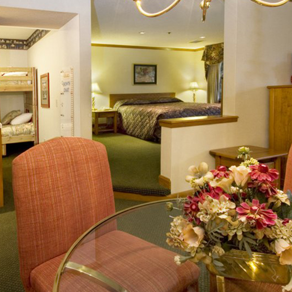 Bring the whole gang to the expansive Family Suite. Featuring a spacious living rooms, and well-equipped kitchenette, you’re sure to have everything you could need right at your fingertips. Your kids are sure to love sleeping in their very own room, equipped with a TV, while Mom and Dad can enjoy some quiet time in their enclosed bedroom. Click on the TV, microwave some popcorn, and come together to watch your favorite movie or show as a family.