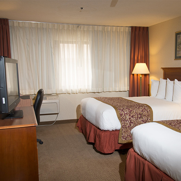Designed with comfort and convenience in mind, you’re sure to have a relaxing stay in our Double Queen Room. Lay back on one of the two cozy queen size beds as you unwind with your favorite HBO show on the 27” TV. All rooms offer a microwave and refrigerator, perfect for reheating and storing delicious leftovers from home. Plus, guests working on-the-go are sure to appreciate the spacious work desk and free Wi-Fi access.
